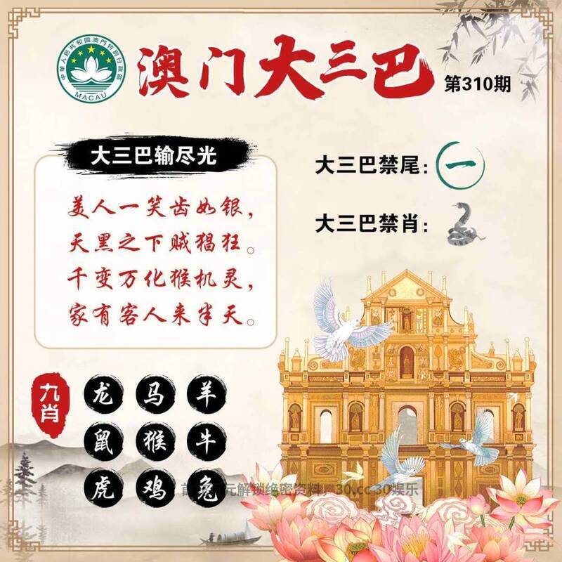 大三巴《单双各四肖》770219.com |