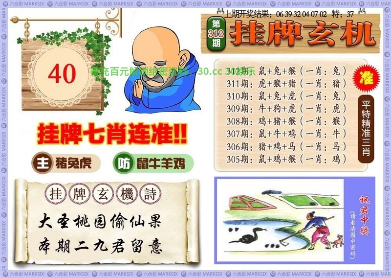 | 307期 | 鼠猴 | 08合 | 2头单 | 狗20 |