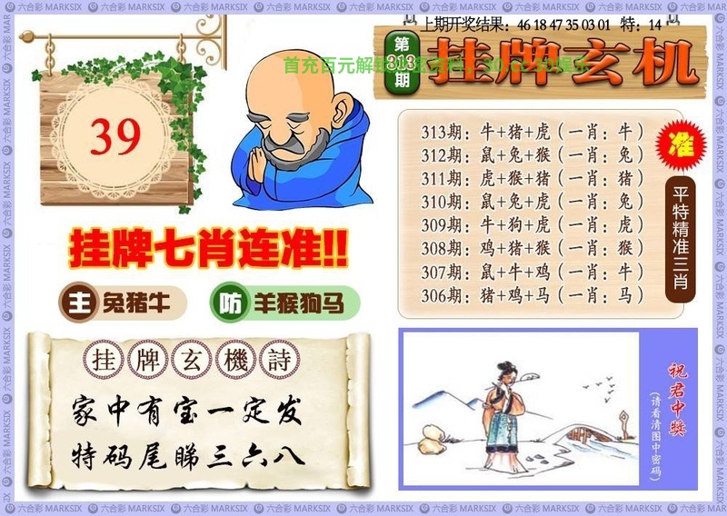 | 314期七肖 | 牛鼠狗猪羊猴马 | 开:發00 |